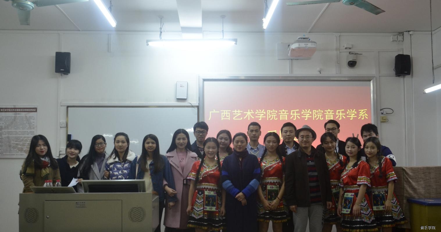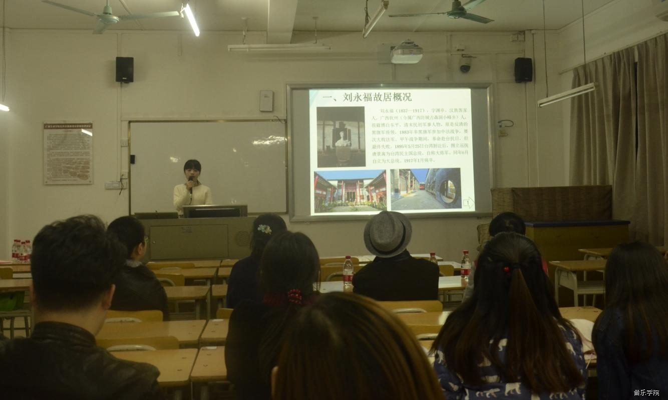 第三部分,音乐学系2016级音乐学班钦州采风汇报。音乐学系2016级全体同学在华伟老师的带领下于2016年12月到广西钦州采风。在本次汇报活动中,2016级的同学给大家讲述了刘永福故居概况,一起欣赏了钦州园博园景貌,领略了丰富的钦州采茶戏,以及他们采风后的感想,整个采风过程中在华伟老师的指导下同学们拍摄了许多精美的照片。汇报当中还有一支演唱小分队表演了民歌,十分精彩!