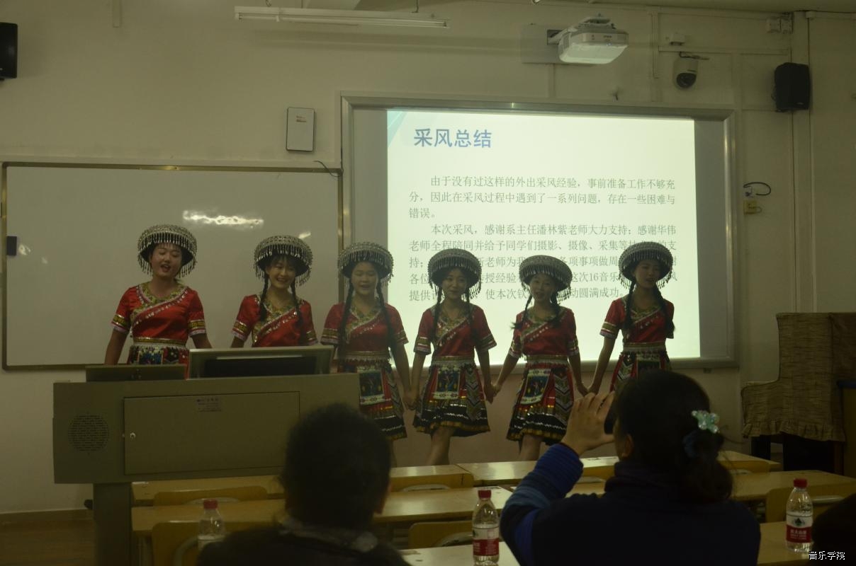 2016年12月30日晚19点30分,FUN乐天使官方网站音乐学系在公共楼303教室成功举行2016年教务处立项的“强基专项《音乐学专业建设项目》”中的学生外出考察活动的汇报会。FUN乐天使官方网站副院长、音乐学系主任潘林紫副教授、学校发展规划处副处长吴霜教授、音乐学系副主任蒋燮副教授、以及杨柳成副教授、2016级音乐学班主任李常新老师等莅临指导,以及音乐学系四个年级的学生前来观摩。