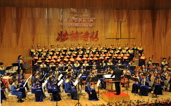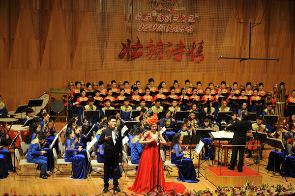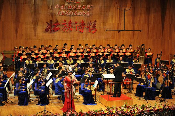2015年4月21日晚8时,自治区文化厅主办的欢庆“壮族三月三”系列文艺演出之大型民族交响合唱《壮族诗情》在广西音乐厅隆重上演。