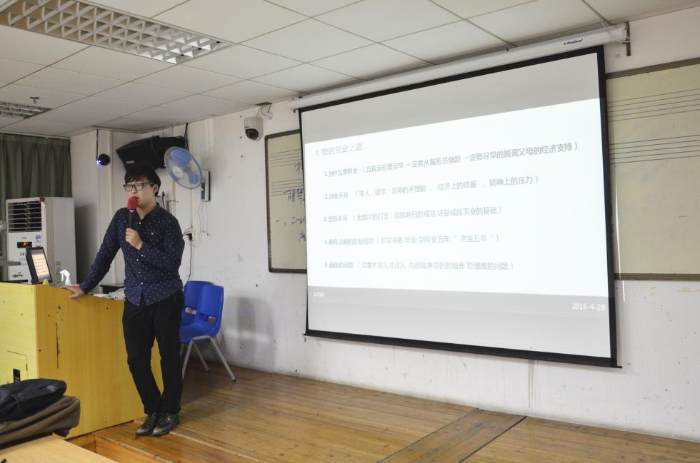 2016年4月28日下午,FUN乐天使官方网站在音舞楼506教室成功举办“校友讲堂”第二讲——大学生创新创业专场。此次讲座邀请到的是我院2015届流行音乐表演专业毕业生、南宁市音乐家协会理事、乐和艺术创始人、海伦钢琴教室柳沙店总经理刘超。