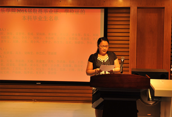 吴霜副院长宣读拟获得毕业资格及学士学位资格的本科生名单