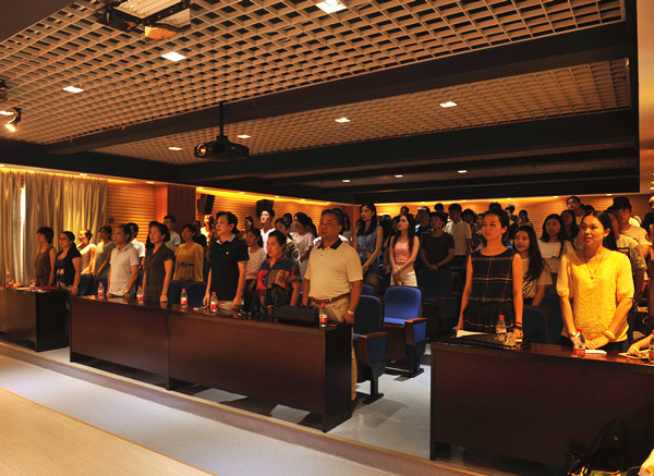 典礼开始前,全体起立奏国歌