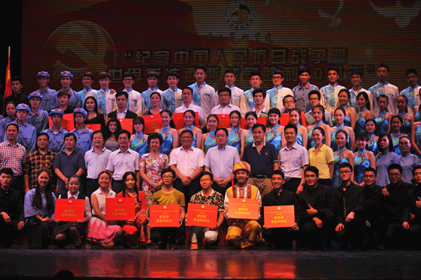 由学院主办的“纪念中国人民抗日战争胜利暨世界反法西斯战争胜利70周年”学生歌咏比赛决赛于6月16日晚8时在会演中心举行。我院派出的两支参赛队伍,一支演唱的是《在太行山上》,他们饱满的精神状态令观众眼前一亮,高亢嘹亮的歌声更是唱出了当代大学生的爱国情怀和青春朝气,感染了现场所有的人,一举夺得本次比赛专业组一等奖;另一支队伍演唱的《二月里来+弹起我心爱的土琵琶》则获得了本次比赛专业组的优秀奖。