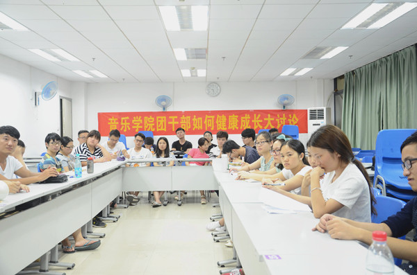 本次座谈会就“团干部如何健康成长”展开讨论。讨论过程中,谢斌书记首先发言。他先充分肯定了我院对本次活动的精心准备,接着强调:团干部必须践行社会主义核心价值观,掌握共青团的规律,了解共青团的业务,积极帮助同学们的学习与生活,从而起到先锋带头的作用。随后,我院曾娇琳副书记发言,她指出:团干部要学会追求,要明确定下目标,并为之付出百分百的努力;要正确看待学历与能力之间的关系;要学会躬行,严格要求自己,不断完善自己;还要学会思考,学会总结,学会在一次次的工作中积累经验。接着,参加这次交流会的学院团委老师还结合自己的亲身经历与同学们分享了自己的学生工作经验并提出了“四能四受”、“三严三实”的工作要求,要求团干们要严格要求自己,能吃得了苦,能耐得住寂寞,做好事,干实事。最后,团干部们围绕此次会议主题展开讨论。