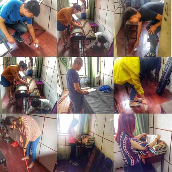 (我院学生帮助清洁工打扫音舞楼琴房)