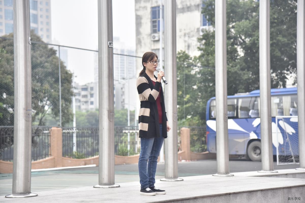 7点20分,升旗仪式正式开始。随着庄严的国歌声,鲜艳的五星红旗冉冉升起,迎风飘扬,全场师生向国旗行注目礼。礼毕,农花副书记发表讲话:她首先通报了本学期截止第8周我院因无故旷课原因受到各等级处分的学生情况,希望所有同学引以为戒,严格遵守学校的各项规章制度,不断加强自身修养和自我约束能力,共同创建良好的学风;接着通报了伪造电动自行车出入卡的学生情况,希望大家能够从学校的角度出发,积极配合保卫处的工作,共同维护好学校的正常秩序;最后还强调了“五一”劳动节放假期间的安全问题,嘱咐同学们注意人身安全、出行安全、财产安全、网络安全等,并要求大家在假前配合学院如实填写好《假期去向表》,收假当天按时返校。