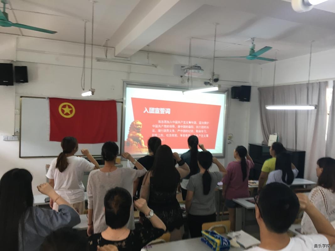 同学们还在团支书孙晨曦同学的带领下,高举右手,重温入团誓词。