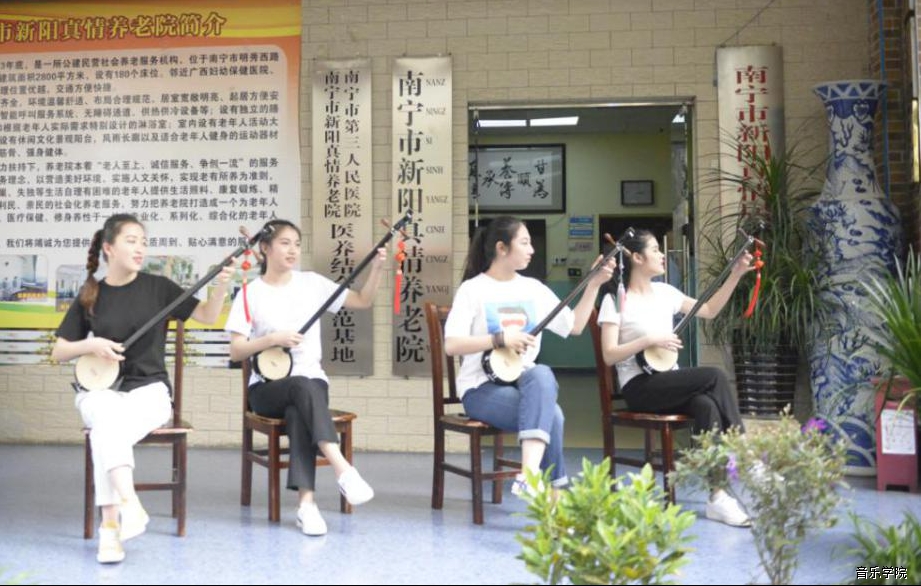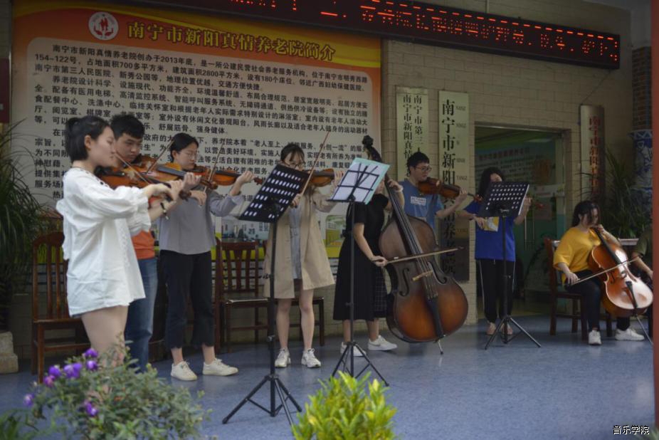 此次志愿服务活动,我院学生干部利用专业特长为新阳真情养老院老人和工作人员送去精彩的文艺节目。男声二重唱平果哈嘹《时逢好年景》、宁明板栏调《黄豆芝麻样样裁》天琴弹唱以及弦乐重奏《卡农》等节目,表达了我院学生会干部对养老院老人的美好祝福。演出过程充满了掌声与欢笑声,老人们纷纷对同学们的表演表示赞扬。
