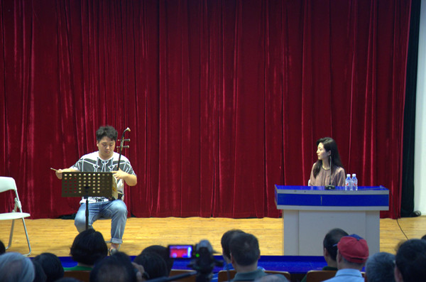 讲座上,于红梅教授首先表明了此次讲座的目的,即相互交流学习;接着,我院民乐系二胡专业大一、大四及研究生班三位学生进行现场演奏,于教授不仅就其演奏技术、表演风格等方面给予客观评价,还指出:在二胡演奏中,我们只有全身心投入,将自己的情感及对作品的恰当理解融入其中,表现出个人的演奏特色,才有可能将艺术表演更加完美地呈现。最后,于教授与在座师生进行交流互动,讲座在一片掌声中顺利结束。