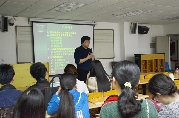 2015年3月27日下午,陈明志教授应我院邀请在音乐舞蹈大楼505教室举办了《现代化民族管弦乐配器思维探究》专题讲座。作曲系师生均到场聆听。