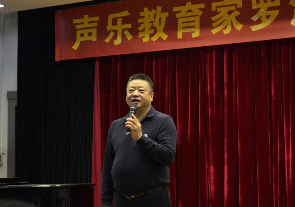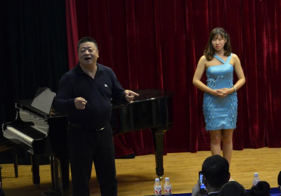罗洪教授认真聆听我院学生的演唱