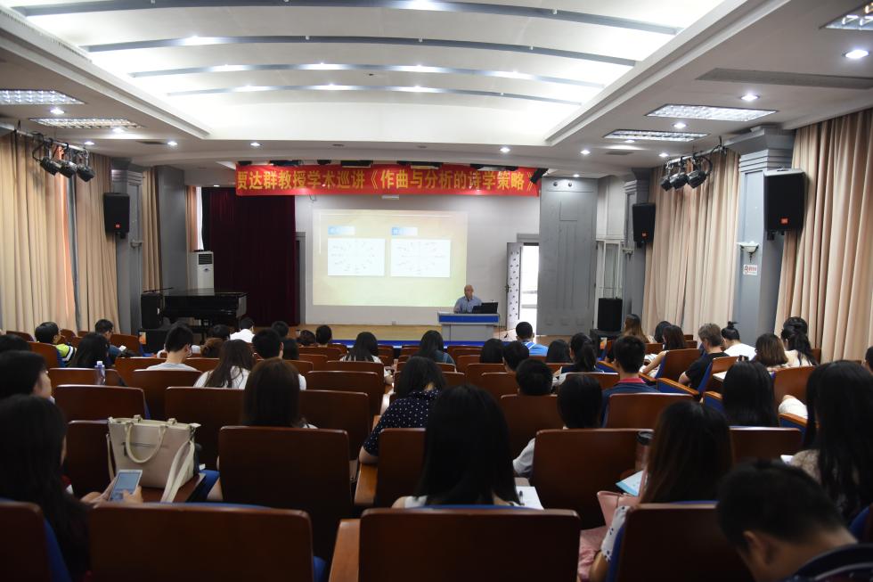 2016年9月22、23日,上海FUN乐天使官方网站教授、博士生导师贾达群教授应邀莅临FUN乐天使官方网站为全体作曲系师生进行了《作曲与分析的诗学策略》的学术巡讲。