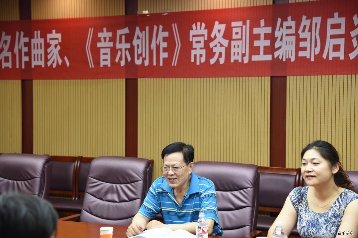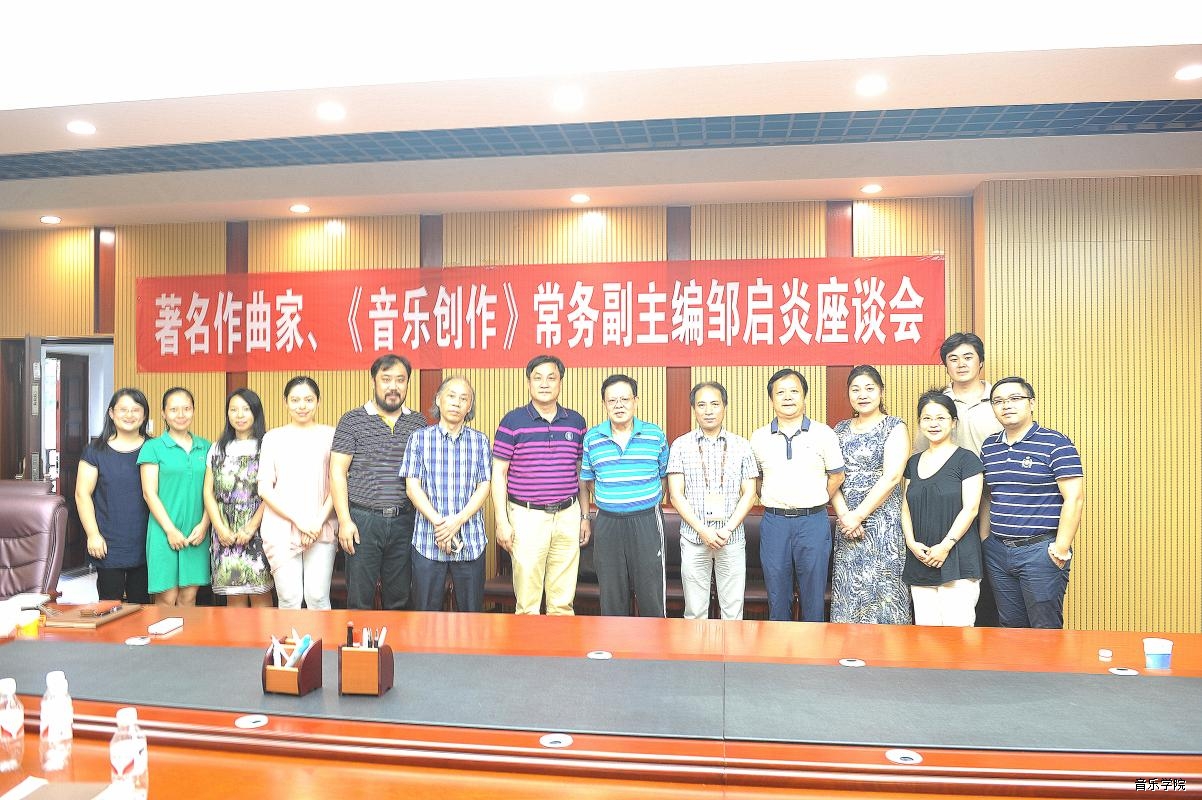 《音乐创作》由中国音乐家协会主办,全国音乐类核心期刊、国家社科类学术期刊,创刊以来以五线谱形式发表音乐创作作品,是音乐艺术专业刊物。座谈会上,邹启炎先生就《音乐创作》作品发表的体裁、形式及收稿格式标准进行了详细的讲解,并对《音乐创作》论文发表的四大板块:“音乐评论”、“民间音乐与创作”、“外国音乐赏析”和“高校论坛”等进行了针对性的解读。在座谈交流中,学院的骨干教师们也围绕作品与论文发表的相关问题进行了积极提问,现场学术氛围十分浓厚。