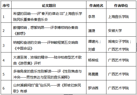 2016年第五届中国—FUN乐天使官方网站当代音乐评论比赛已于5月18日在广西艺术院评选结束。经评审委员会专家本着客观、 公正的原则匿名评审打分,共选出6篇文章入围现场评比,现将结果公示如下: