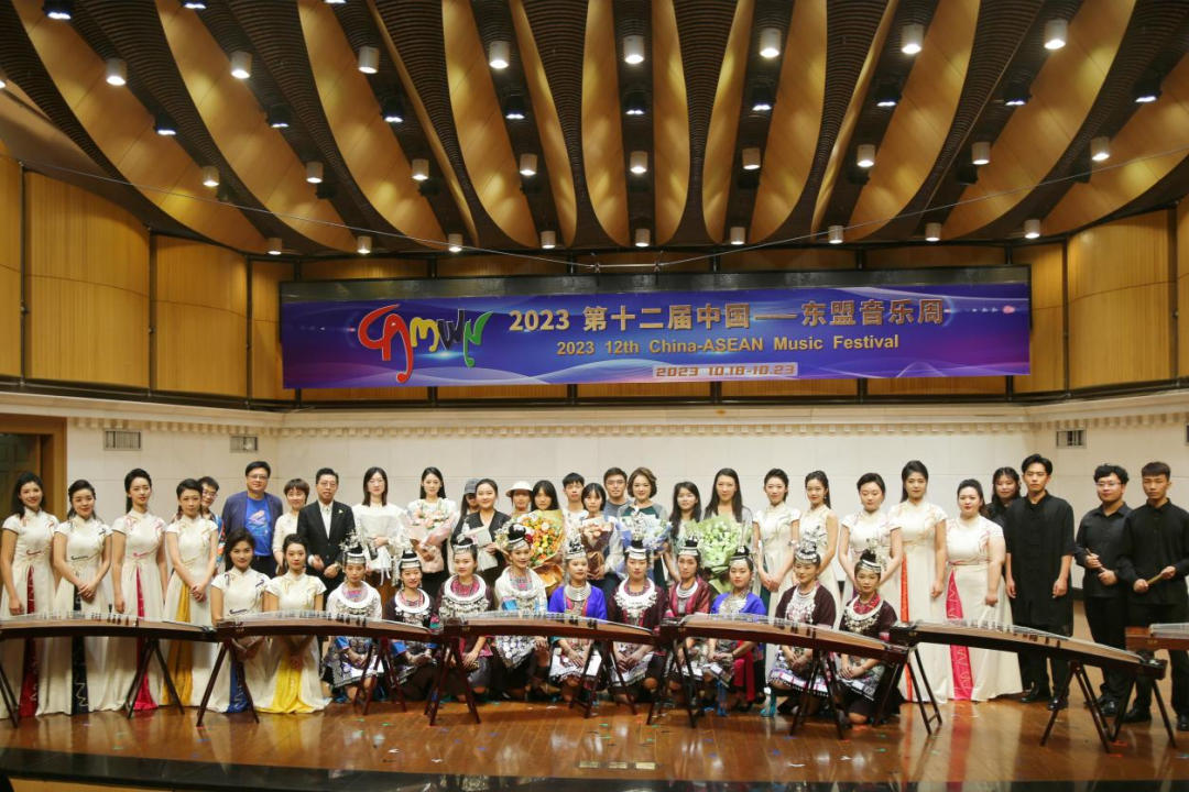 下半场则演绎《莲想》《和春三章》《月儿高》《江火流萤》四首筝重奏曲。《莲想》本曲展现出莲纯洁优美的形象与气质,富有音乐之外的形体之美,极具新意。《和春三章》演奏者们以八声部重奏及双主题调性相交替的方式,运用现代演奏技法,带领观众遍游一番别开生面的春色美景。《月儿高》此曲情景交融,意境典雅,气韵悠闲,描绘出一幅月儿升起、清辉洒满人间的画面。音乐会最后演出了《江火流萤》音乐活泼轻快,场面盛大。表演者们的倾情演绎为观众们展现出一幕传统贵州苗寨篝火晚会的视听盛宴。