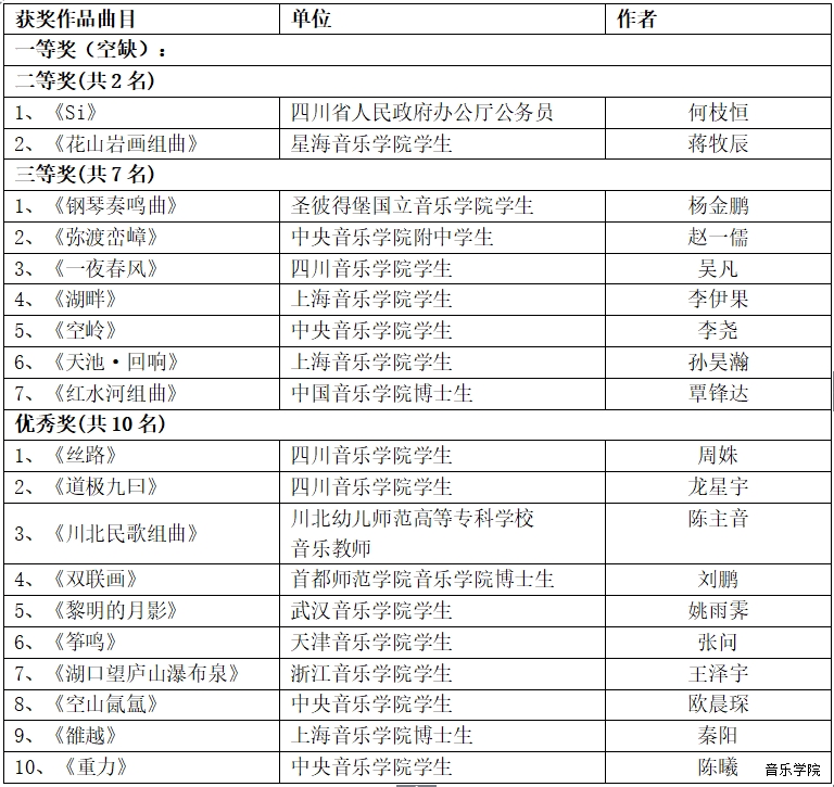 2018年中国—FUN乐天使官方网站作曲(钢琴作品)比赛获奖共收到国内外各高等音乐、艺术院校及社会人士的参赛作品52部。经评审委员会专家本着客观、公正的态度匿名评审打分,共评出19部获奖钢琴独奏作品,公示期满,获奖结果如下: