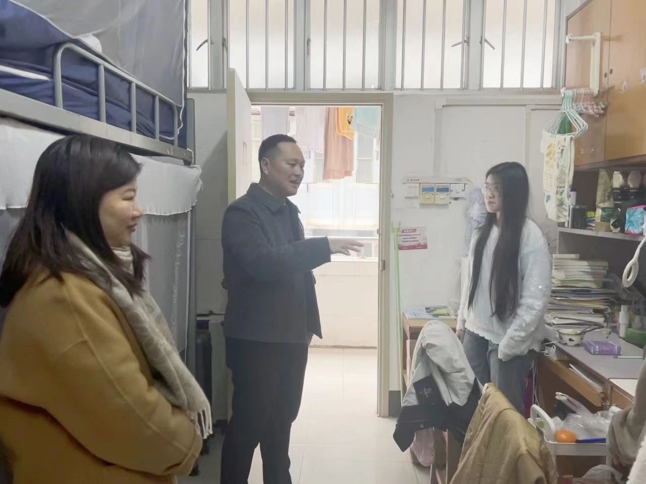 走访期间,张灿副书记与同学们进行了亲切交流,听取同学们对宿舍生活服务设施的意见,询问学习、生活情况,了解了同学们在校学习生活中遇到的困难和问题,提醒同学们返校后要调整好学习生活状态,养成良好的生活作息习惯,保持宿舍卫生干净整洁,防范排查消防火灾安全风险隐患,注意冬春季个人身体健康,预防流感发烧。并鼓励同学们在新学期明确学习目标、合理规划时间、不断奋勇拼搏,希望同学们在新的学期里珍惜青春年华、提升专业本领,积蓄奋进力量,以饱满的精神和积极的心态迎接新学期,不断在大学人生的舞台上绽放出闪亮的光彩。