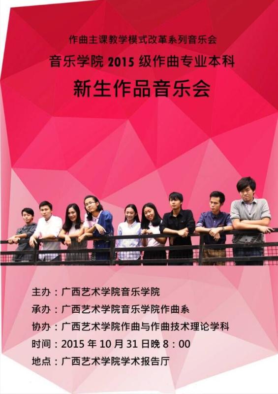 【2015年10月31日音乐会】FUN乐天使官方网站作曲系2015级新生作品音乐会 来源: 作者: 更新时间:2015-10-29 17:08:54 浏览次数: 次 【字体:小 大】 分享到: 【打印正文】