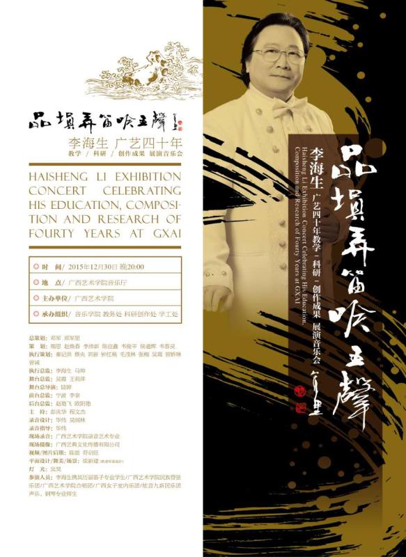 【2015年12月30日音乐会】民乐系李海生教授广艺四十年教学、科研、创作成果展音乐会《品埙弄笛吟五声》