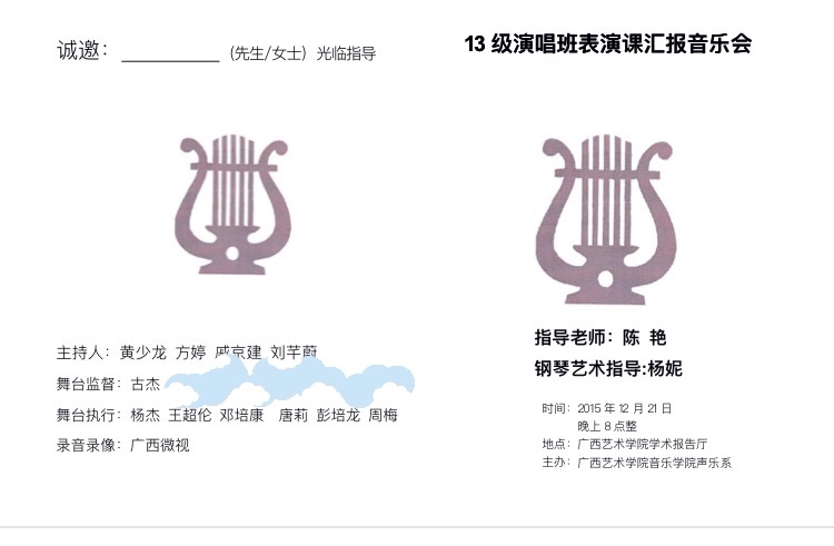 【2015年12月21日音乐会】FUN乐天使官方网站2013级演唱班表演课汇报音乐会 来源: 作者: 更新时间:2015-12-20 18:17:49 浏览次数: 次 【字体:小 大】 分享到: 【打印正文】