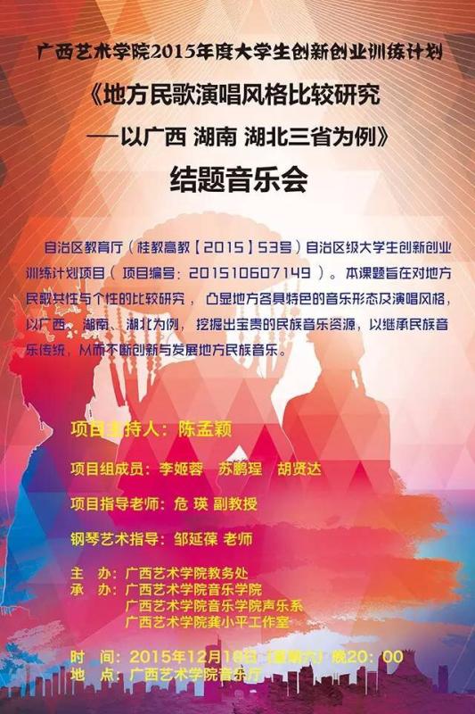 【2015年12月19日音乐会】《地方民歌演唱风格比较研究——以广西 湖南 湖北三省为例》结题音乐会