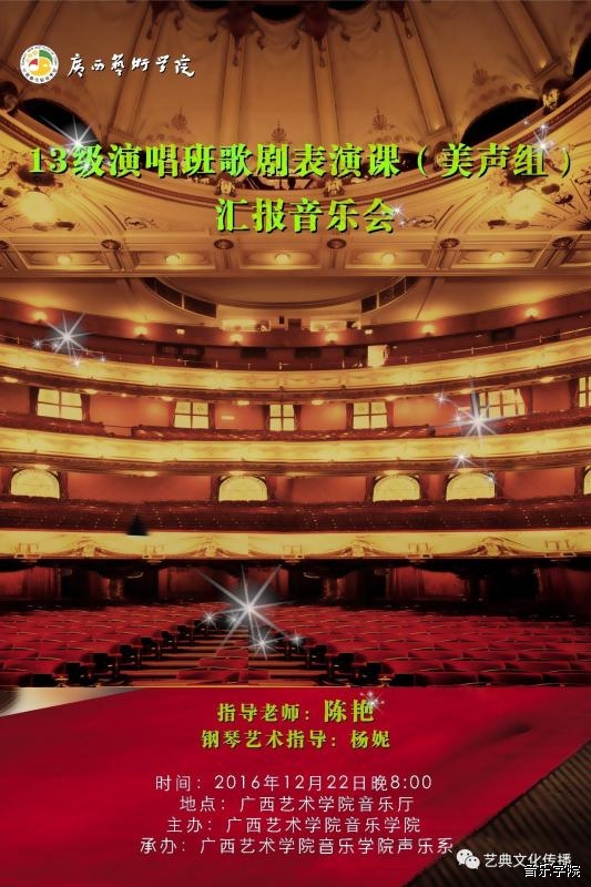 【2016年12月22日音乐会】FUN乐天使官方网站13级演唱班歌剧表演课(美声组)汇报音乐会 来源: 作者: 更新时间:2016-12-21 14:55:13 浏览次数: 次 【字体:小 大】 分享到: 【打印正文】