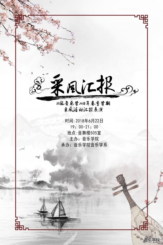 【2018年6月22日学术活动】FUN乐天使官方网站2016级音乐学班2018年春季学期采风活动汇报展演 来源: 作者: 更新时间:2018-06-20 10:40:51 浏览次数: 次 【字体:小 大】 分享到: 【打印正文】